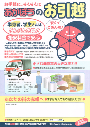 就職に進学、単身赴任など比較的小さなお引越なら、赤帽が断然お得です。